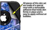 uSkins™ are self adhering vinyl decal style skins and are a great way to add a new look to your protective case. uSkins are a composite of two layers of commercial grade materials. The bottom layer is a soft, flexible vinyl with a special removable adhesive that is easily positioned, applied without air bubbles. Next we print the bottom layer with UV protected, fade resistant inks that deliver superb photo quality designs in vibrant colors. Finally we bond a professional grade laminate over the entire skin adding a glossy protective finish.