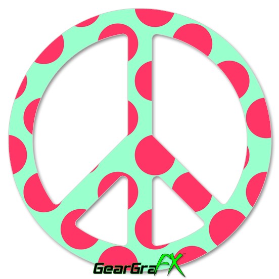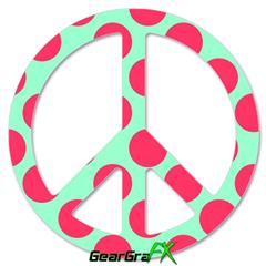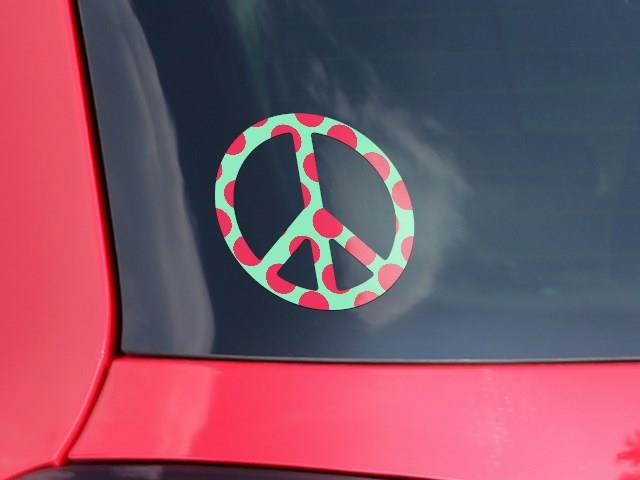 Kearas Polka Dots Pink And Blue - Peace Sign Car Window Decal 6 x 6 inches