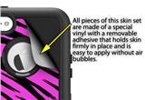 uSkins™ are self adhering vinyl decal style skins and are a great way to add a new look to your existing protective case. uSkins are a composite of two layers of commercial grade materials. The bottom layer is a soft, flexible vinyl with a special removable adhesive that is easily positioned, applied without air bubbles. Next we print the bottom layer with UV protected, fade resistant inks that deliver superb photo quality designs in vibrant colors. Finally we bond a professional grade laminate over the entire skin adding a glossy protective finish.