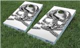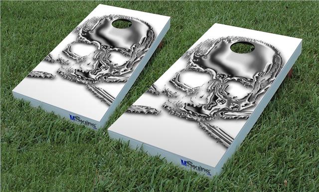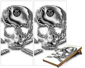 Cornhole Game Board Vinyl Skin Wrap Kit - Chrome Skull on White fits 24x48 game boards (GAMEBOARDS NOT INCLUDED)