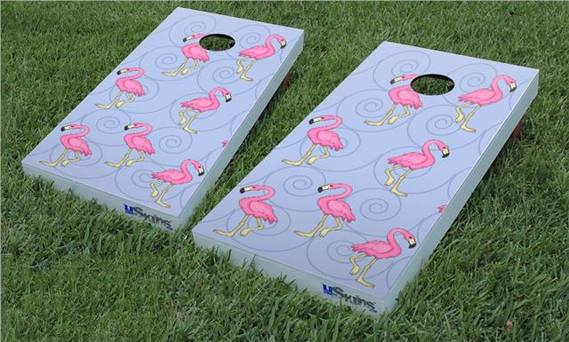 Cornhole Game Board Vinyl Skin Wrap Kit - Flamingos on Blue fits 24x48 game boards (GAMEBOARDS NOT INCLUDED)
