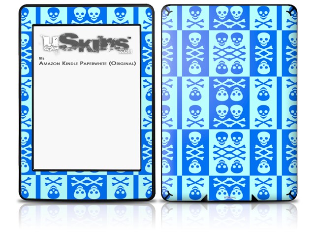 Skull And Crossbones Pattern Blue - Decal Style Skin fits Amazon Kindle Paperwhite (Original)