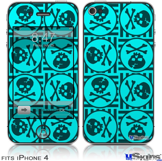 iPhone 4 Decal Style Vinyl Skin - Skull Patch Pattern Blue (DOES NOT fit newer iPhone 4S)