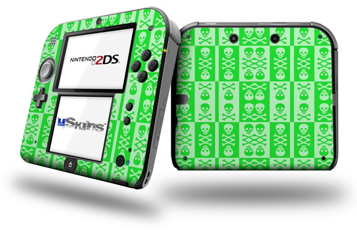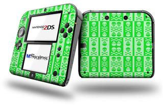 Skull And Crossbones Pattern Green - Decal Style Vinyl Skin fits Nintendo 2DS - 2DS NOT INCLUDED