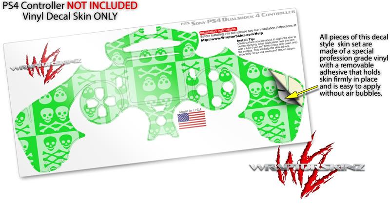 WraptorSkinz Skin compatible with Sony PS4 Dualshock Controller PlayStation 4 Original Slim and Pro Skull And Crossbones Pattern Green (CONTROLLER NOT INCLUDED)
