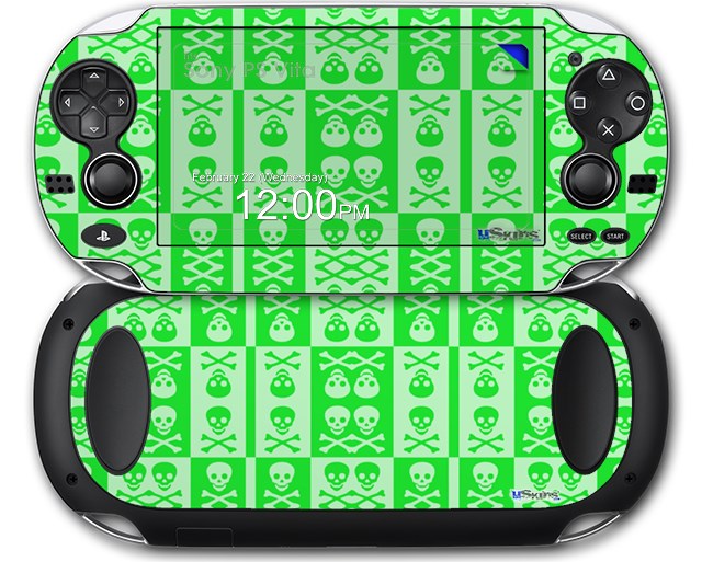 Skull And Crossbones Pattern Green - Decal Style Skin fits Sony PS Vita