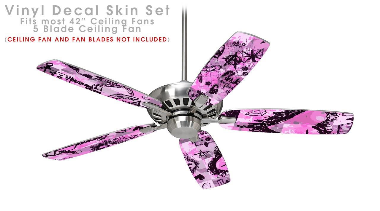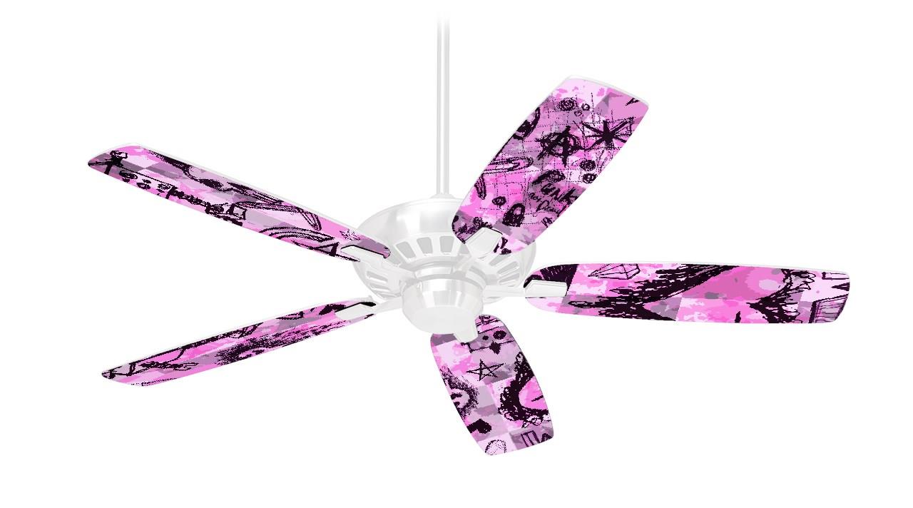 Scene Kid Sketches Pink - Ceiling Fan Skin Kit fits most 42 inch fans (FAN and BLADES SOLD SEPARATELY)