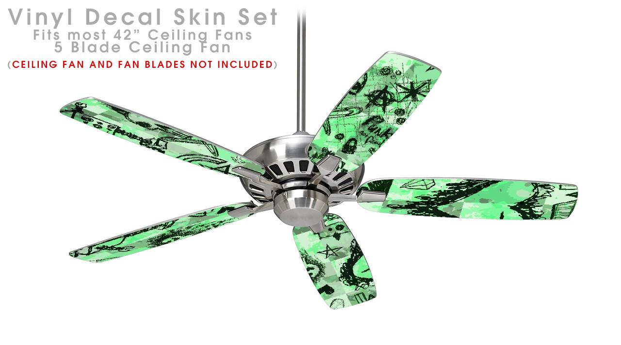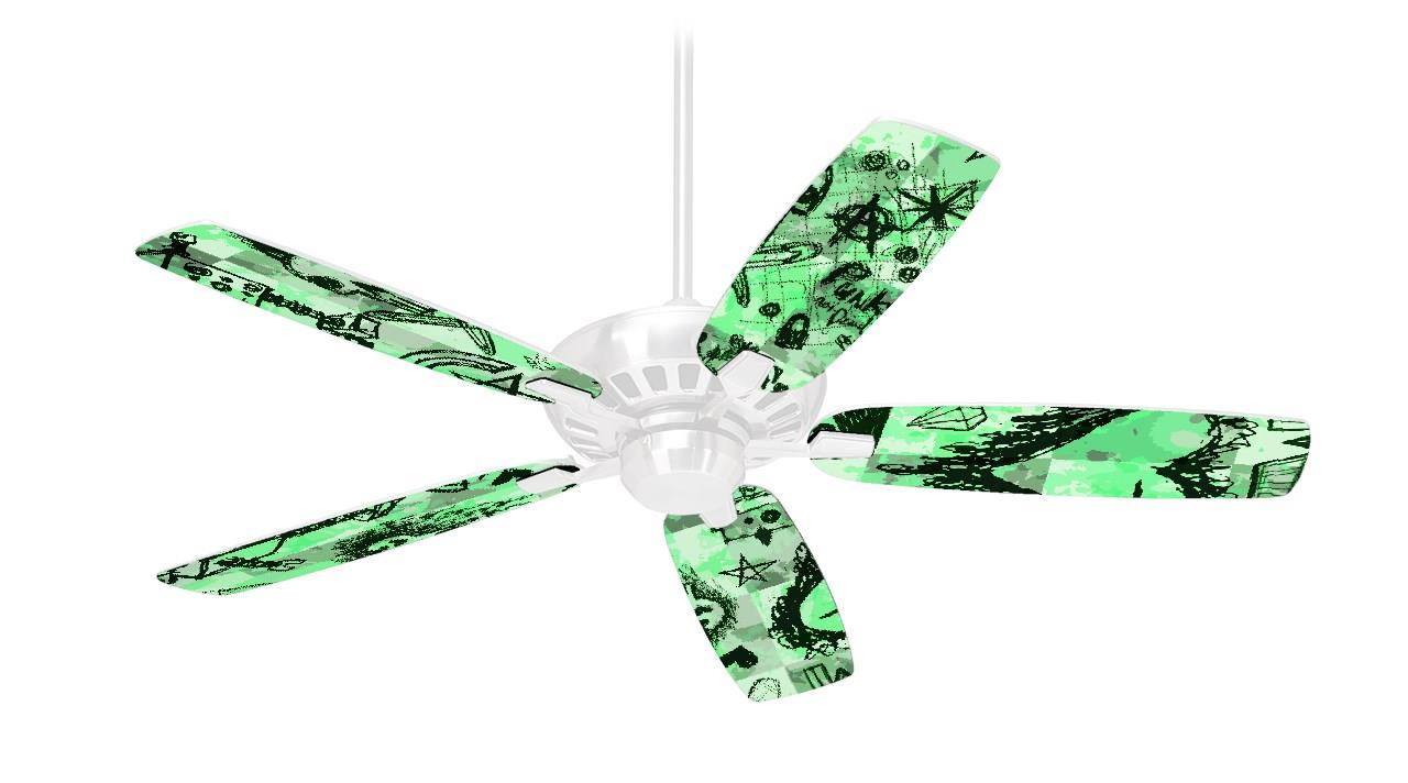 Scene Kid Sketches Green - Ceiling Fan Skin Kit fits most 42 inch fans (FAN and BLADES SOLD SEPARATELY)