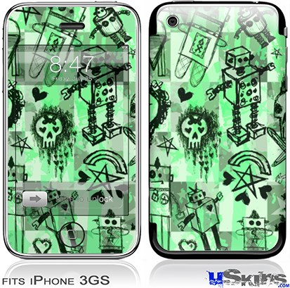 iPhone 3GS Skin - Scene Kid Sketches Green