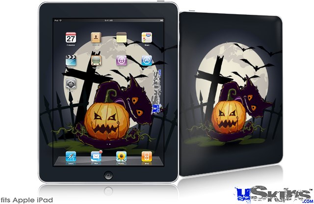 iPad Skin - Halloween Jack O Lantern and Cemetery Kitty Cat