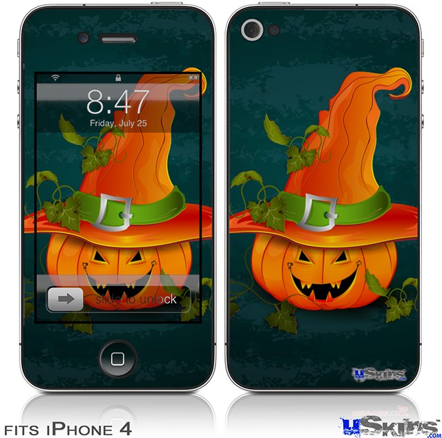 iPhone 4 Decal Style Vinyl Skin - Halloween Mean Jack O Lantern Pumpkin (DOES NOT fit newer iPhone 4S)