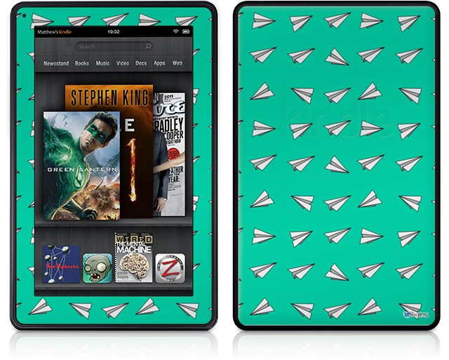 Amazon Kindle Fire (Original) Decal Style Skin - Paper Planes Turquoise