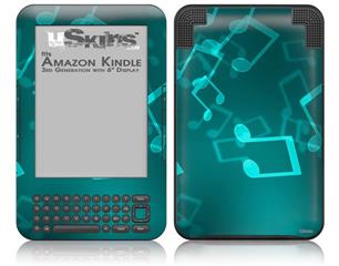 Bokeh Music Neon Teal - Decal Style Skin fits Amazon Kindle 3 Keyboard (with 6 inch display)