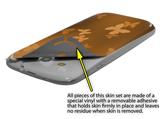 uSkins™ are self adhering vinyl skins that help prevent scratches and look great doing it. Unlike bulky silicon, plastic or metal cases and faceplates, uSkins are designed to be thin and very tough. uSkins are a composite of two layers of commercial grade materials. The bottom layer is a soft, flexible vinyl with a special removable adhesive that is easily positioned, applied without air bubbles, and effortlessly removed without leaving a sticky residue. Next we print the bottom layer with UV protected, fade resistant inks that deliver superb photo quality designs in vibrant colors. Finally we bond a professional grade laminate over the entire skin adding a glossy protective finish.