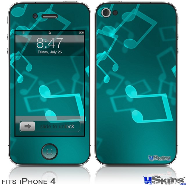 iPhone 4 Decal Style Vinyl Skin - Bokeh Music Neon Teal (DOES NOT fit newer iPhone 4S)