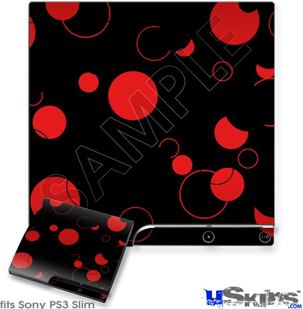 Decal Skin compatible with Sony PS3 Slim Lots of Dots Red on Black