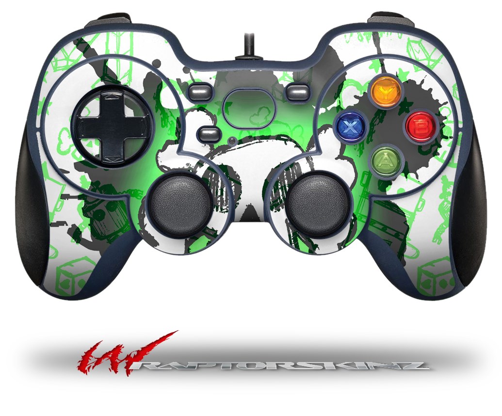 Cartoon Skull Green - Decal Style Skin fits Logitech F310 Gamepad Controller (CONTROLLER SOLD SEPARATELY)