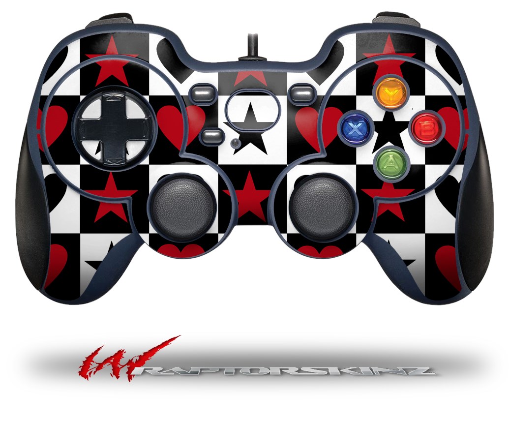 Hearts and Stars Red - Decal Style Skin fits Logitech F310 Gamepad Controller (CONTROLLER SOLD SEPARATELY)