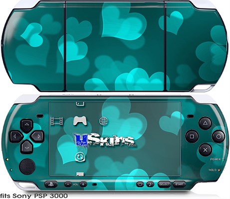 Sony PSP 3000 Skin - Bokeh Hearts Neon Teal