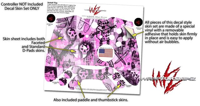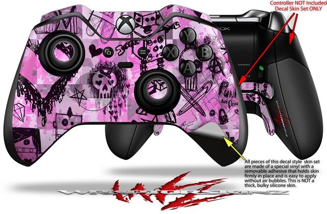 Scene Kid Sketches Pink - Decal Style Skin fits Microsoft XBOX One ELITE Wireless Controller