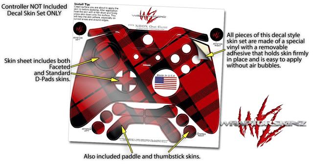 Red Plaid - Decal Style Skin fits Microsoft XBOX One ELITE Wireless Controller