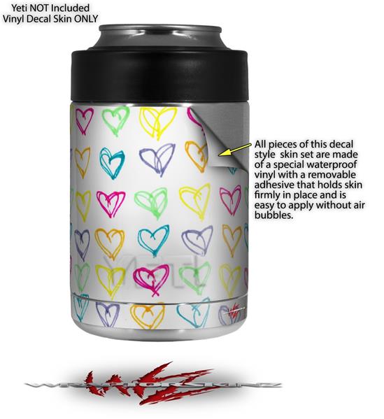 Skin Decal Wrap for Yeti Colster, Ozark Trail and RTIC Can Coolers - Kearas Hearts White (COOLER NOT INCLUDED)