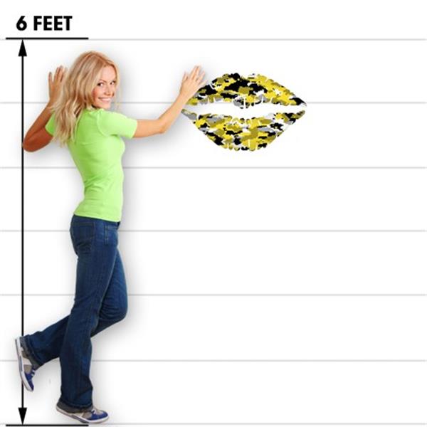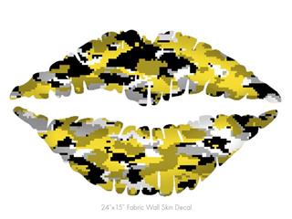 WraptorCamo Digital Camo Yellow - Kissing Lips Fabric Wall Skin Decal measures 24x15 inches