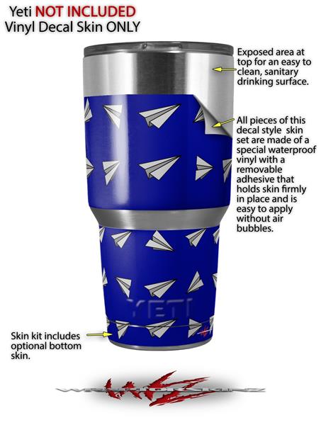 Skin Decal Wrap for Yeti Tumbler Rambler 30 oz Paper Planes Royal Blue (TUMBLER NOT INCLUDED)