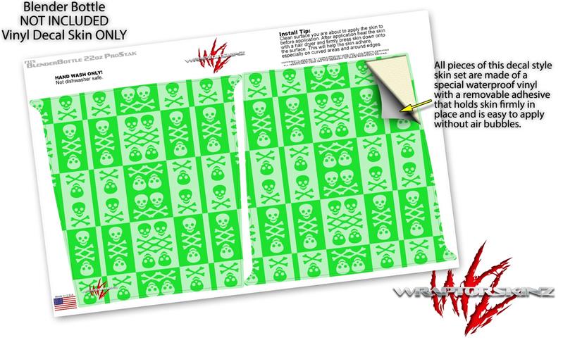 Decal Style Skin Wrap works with Blender Bottle 22oz ProStak Skull And Crossbones Pattern Green (BOTTLE NOT INCLUDED)