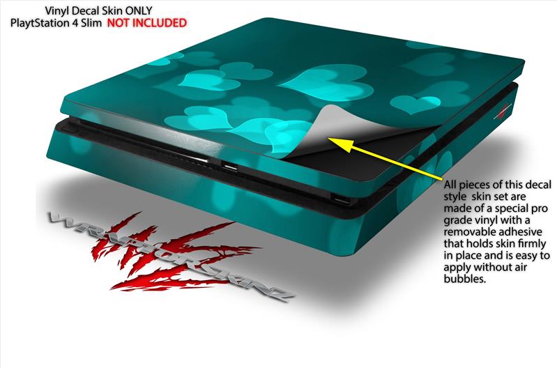 Vinyl Decal Skin Wrap compatible with Sony PlayStation 4 Slim Console Bokeh Hearts Neon Teal (PS4 NOT INCLUDED)