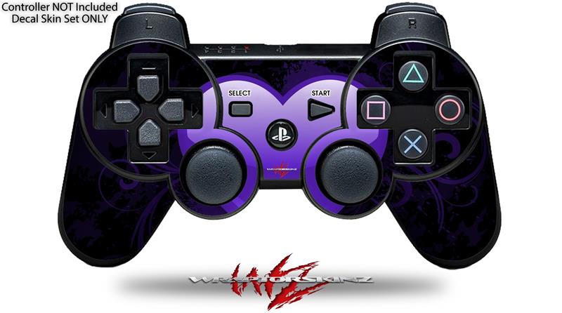 Sony PS3 Controller Decal Style Skin - Glass Heart Grunge Purple (CONTROLLER NOT INCLUDED)
