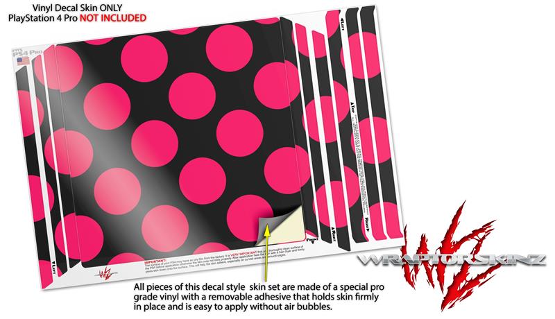 Vinyl Decal Skin Wrap compatible with Sony PlayStation 4 Pro Console Kearas Polka Dots Pink On Black (PS4 NOT INCLUDED)