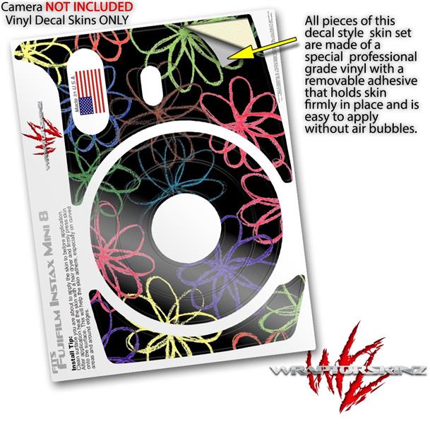 WraptorSkinz Skin Decal Wrap compatible with Fujifilm Mini 8 Camera Kearas Flowers on Black (CAMERA NOT INCLUDED)