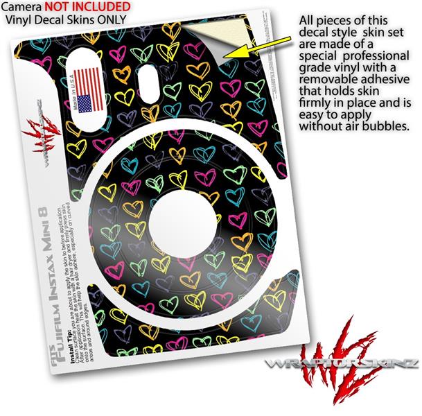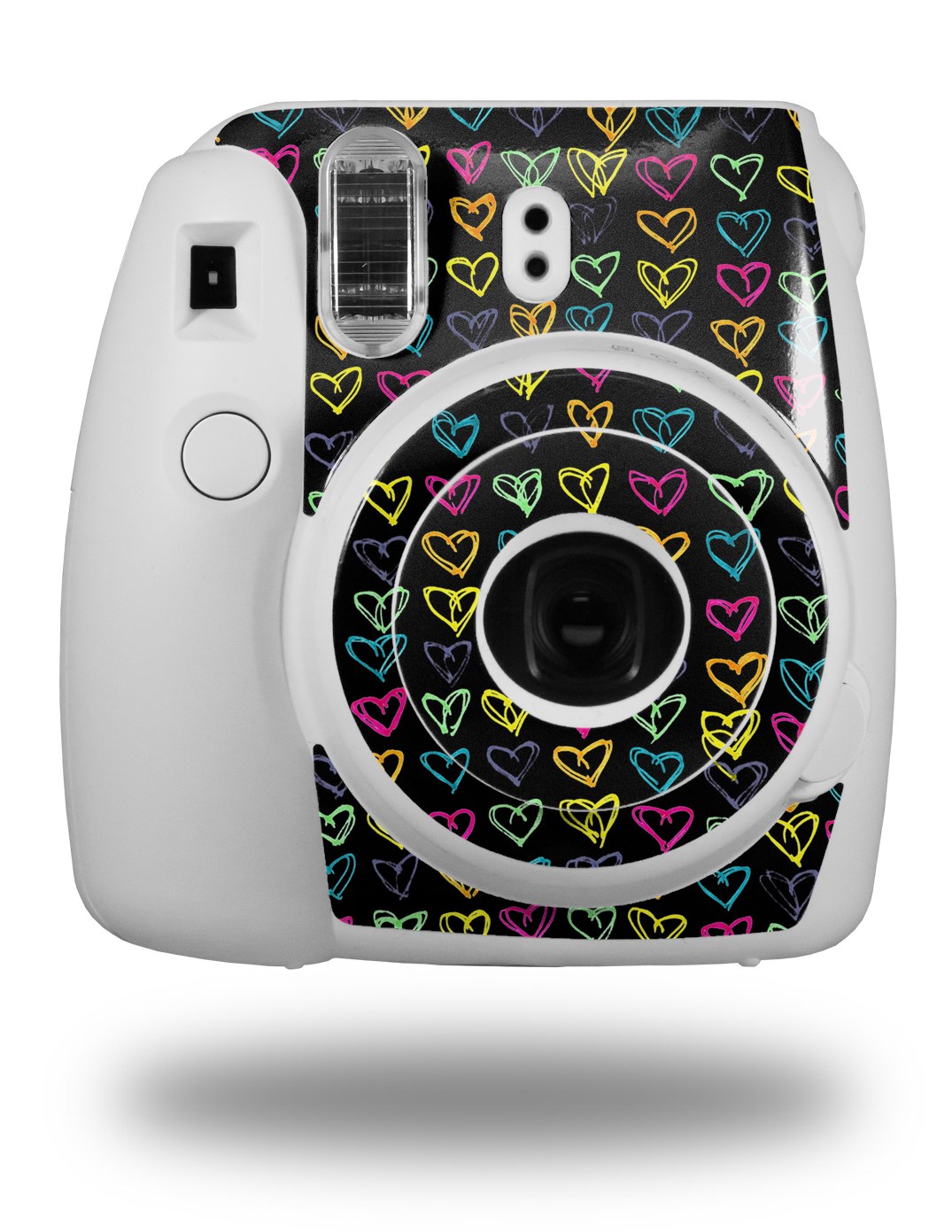 WraptorSkinz Skin Decal Wrap compatible with Fujifilm Mini 8 Camera Kearas Hearts Black (CAMERA NOT INCLUDED)
