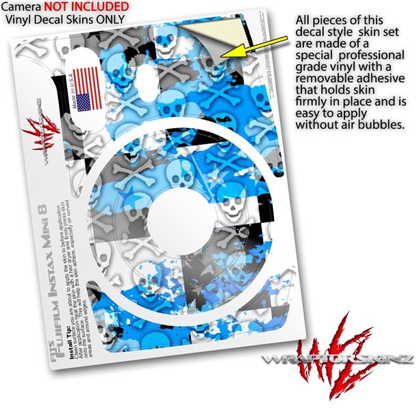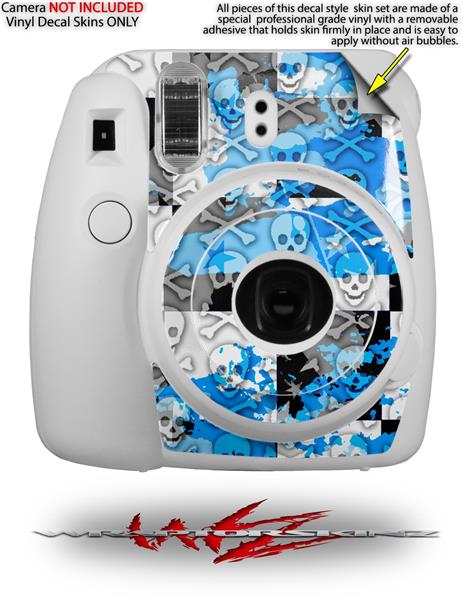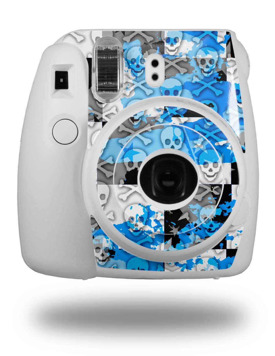 WraptorSkinz Skin Decal Wrap compatible with Fujifilm Mini 8 Camera Checker Skull Splatter Blue (CAMERA NOT INCLUDED)