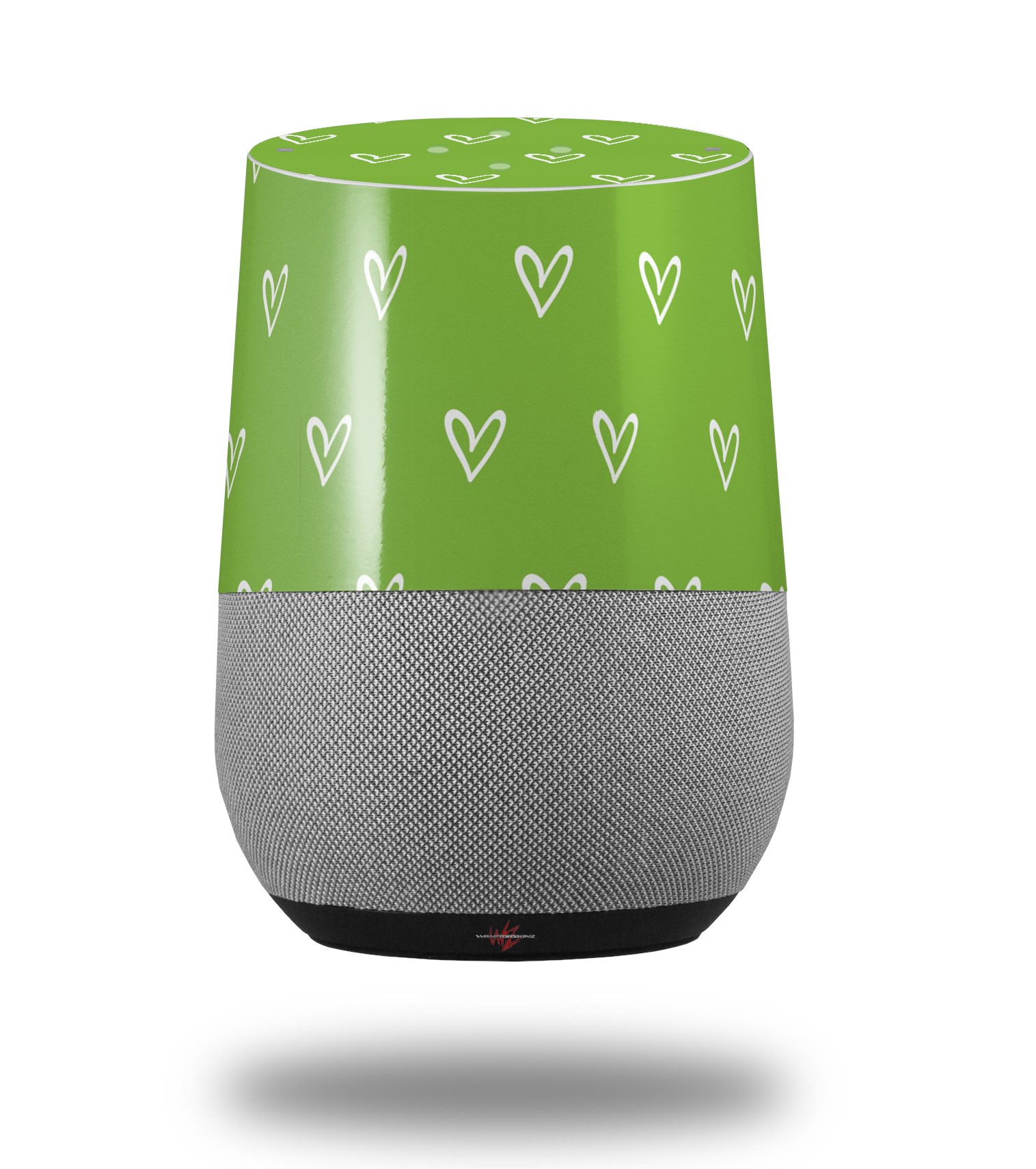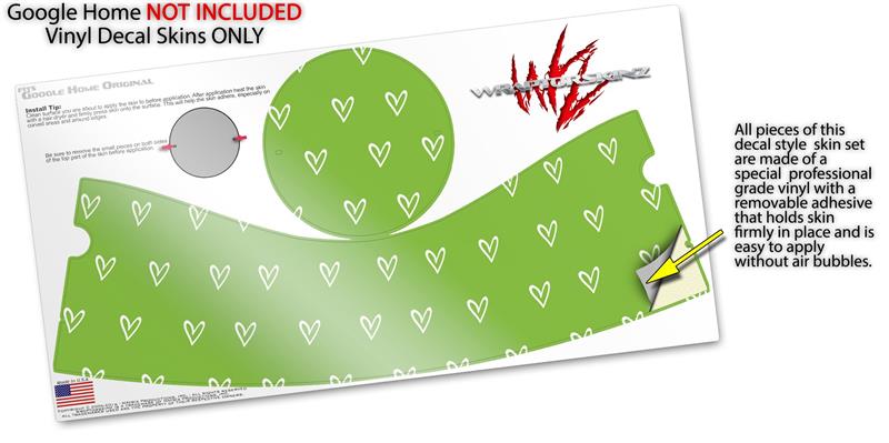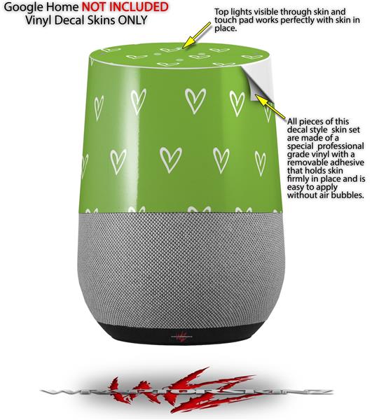 Decal Style Skin Wrap for Google Home Original - Hearts Green On White (GOOGLE HOME NOT INCLUDED)