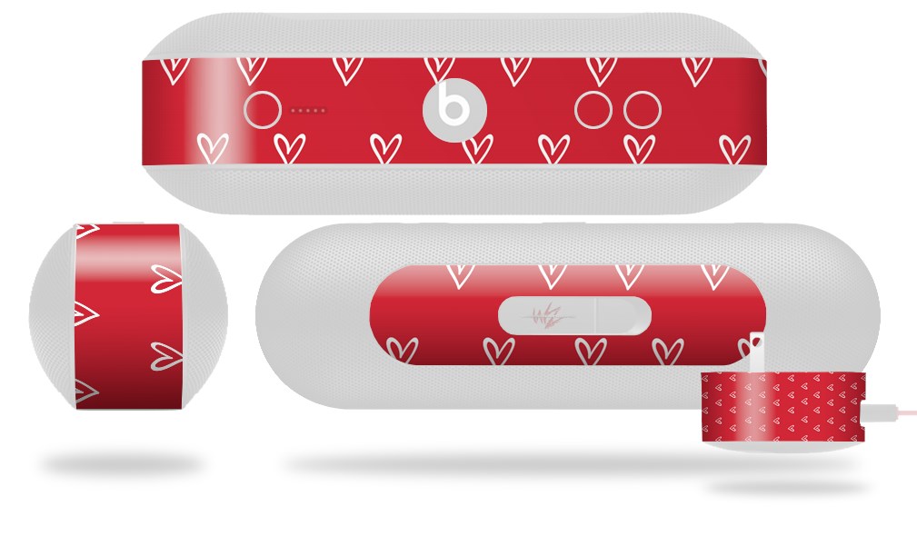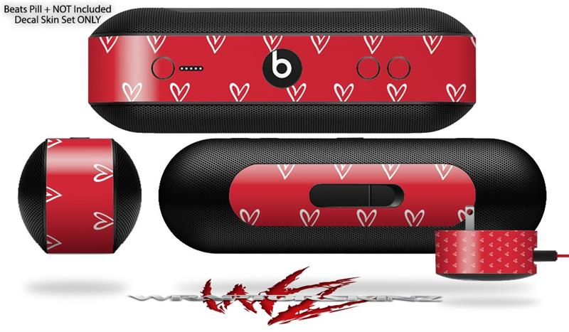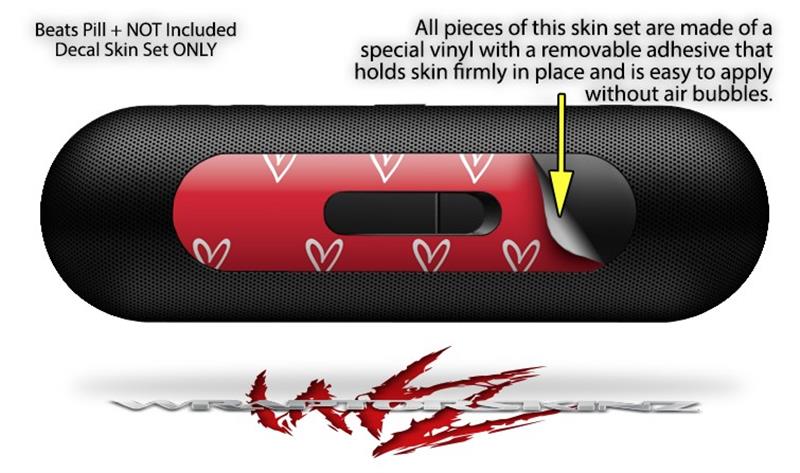 Decal Style Wrap Skin fits Beats Pill Plus Hearts Red On White (BEATS PILL NOT INCLUDED)
