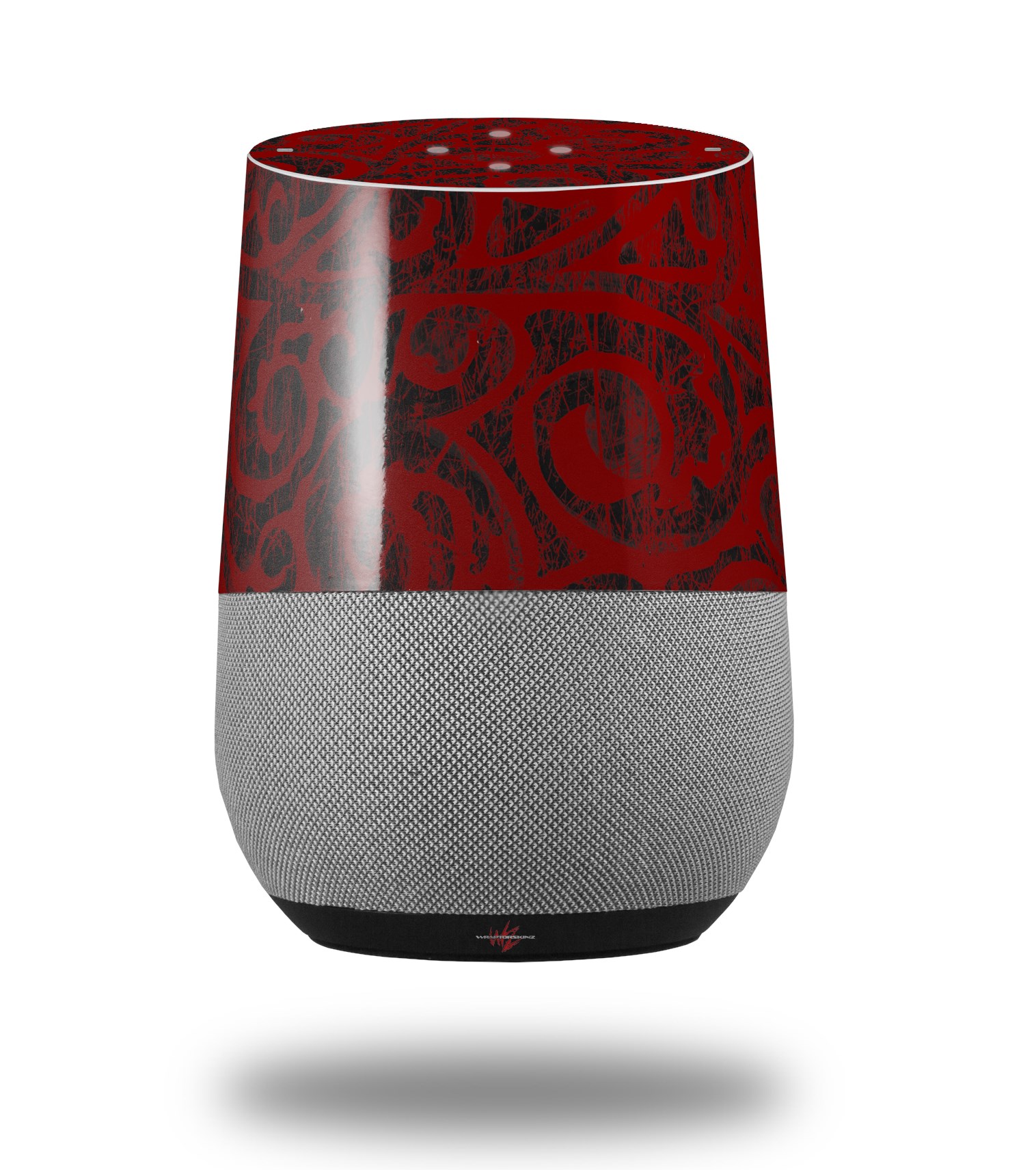 Decal Style Skin Wrap for Google Home Original - Folder Doodles Red Dark (GOOGLE HOME NOT INCLUDED)