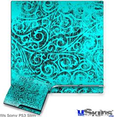 Decal Skin compatible with Sony PS3 Slim Folder Doodles Neon Teal