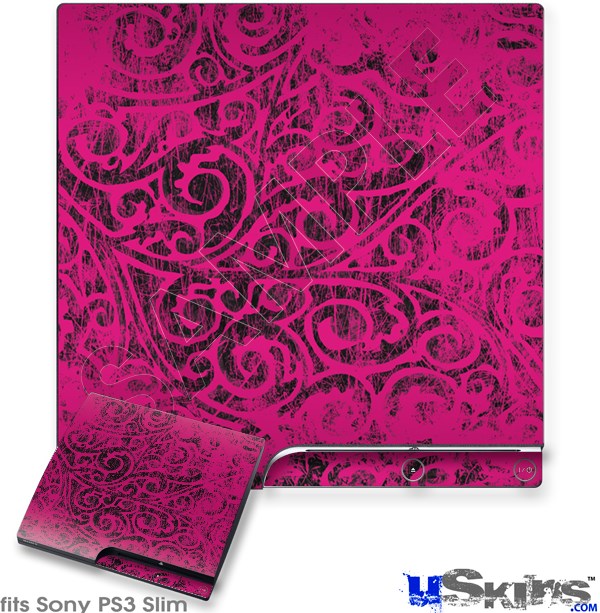 Decal Skin compatible with Sony PS3 Slim Folder Doodles Fuchsia