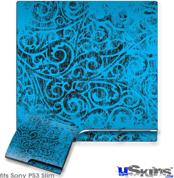 Decal Skin compatible with Sony PS3 Slim Folder Doodles Blue Medium