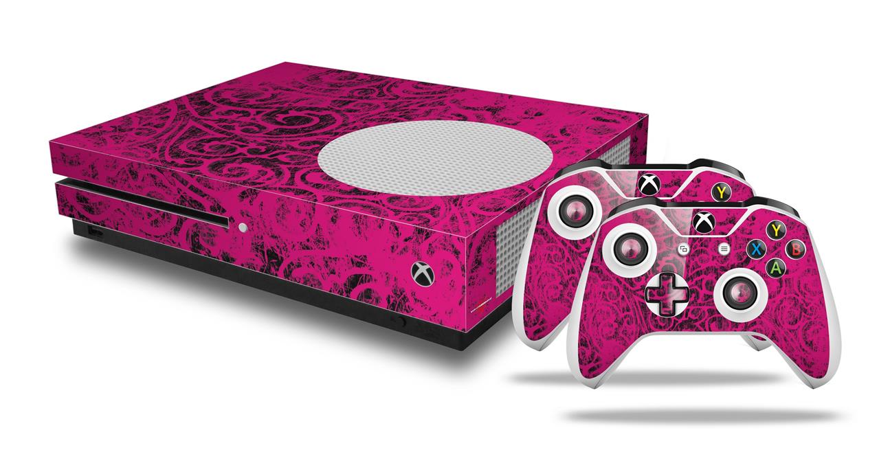 WraptorSkinz Decal Skin Wrap Set works with 2016 and newer XBOX One S Console and 2 Controllers Folder Doodles Fuchsia
