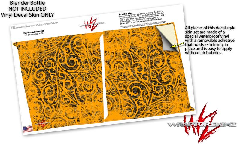 Decal Style Skin Wrap works with Blender Bottle 22oz ProStak Folder Doodles Orange (BOTTLE NOT INCLUDED)