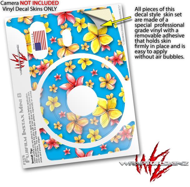 WraptorSkinz Skin Decal Wrap compatible with Fujifilm Mini 8 Camera Beach Flowers Blue Medium (CAMERA NOT INCLUDED)