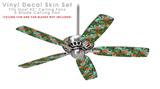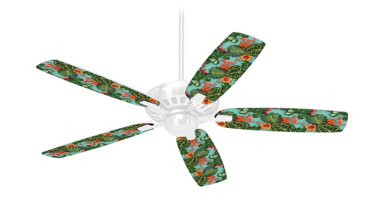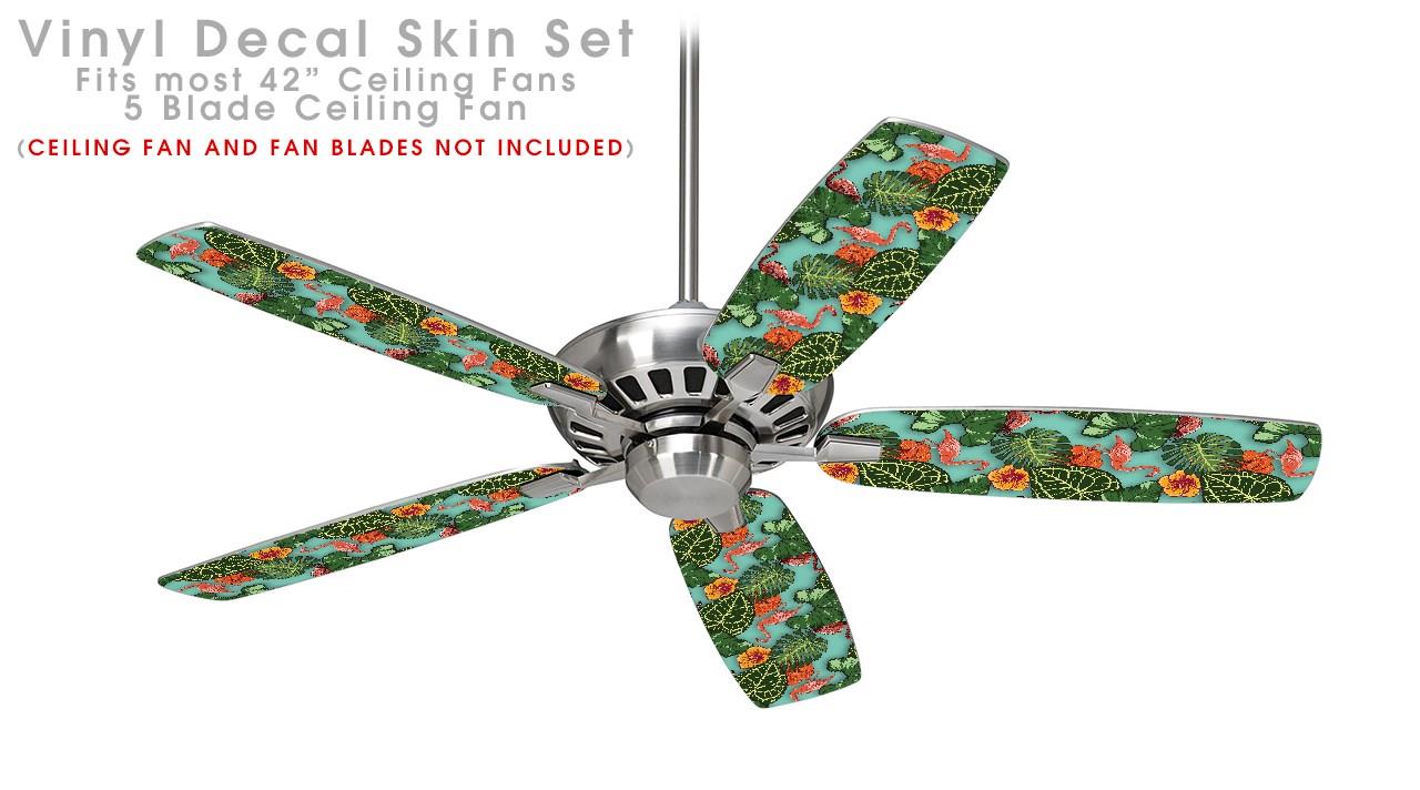 Famingos and Flowers Seafoam Green - Ceiling Fan Skin Kit fits most 42 inch fans (FAN and BLADES SOLD SEPARATELY)