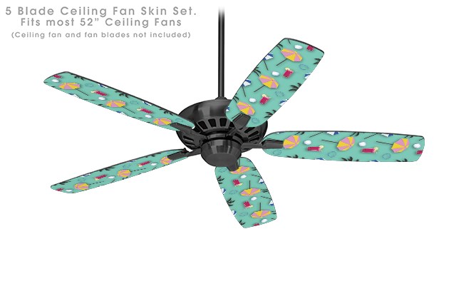 Beach Party Umbrellas Seafoam Green - Ceiling Fan Skin Kit fits most 52 inch fans (FAN and BLADES SOLD SEPARATELY)