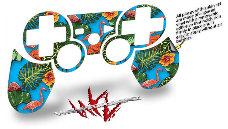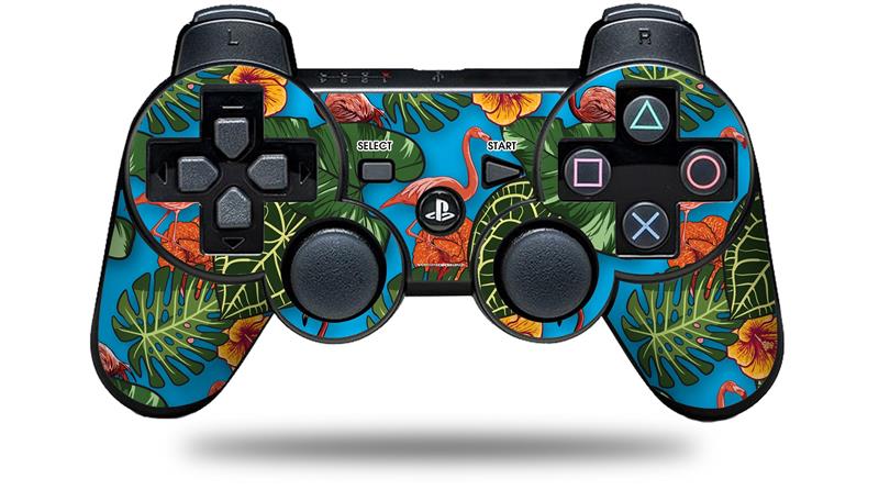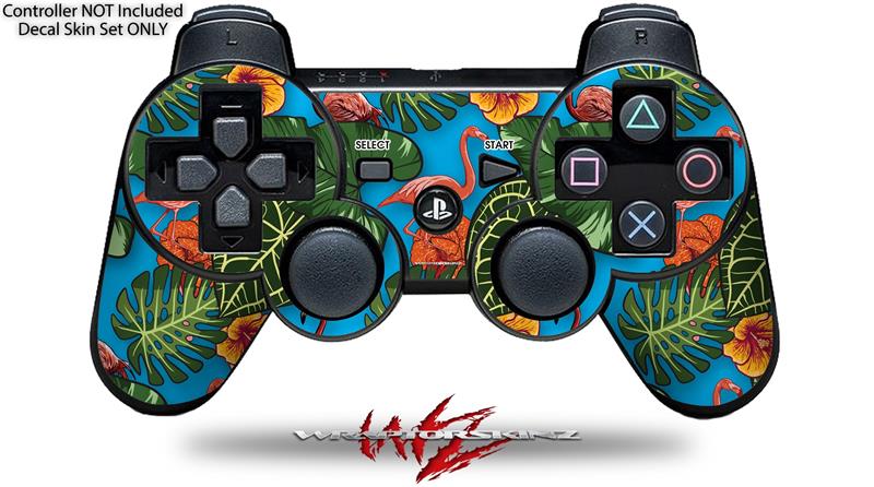 Sony PS3 Controller Decal Style Skin - Famingos and Flowers Blue Medium (CONTROLLER NOT INCLUDED)