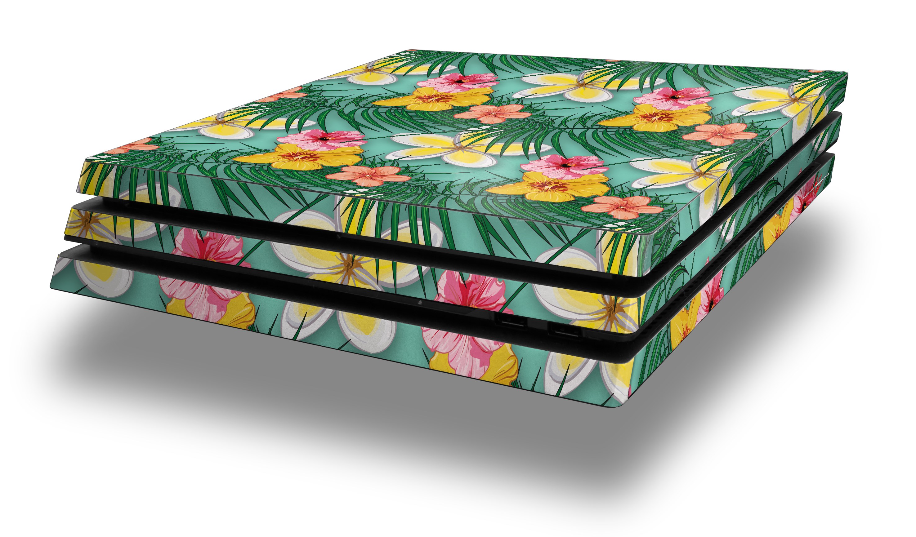 Vinyl Decal Skin Wrap compatible with Sony PlayStation 4 Pro Console Beach Flowers 02 Seafoam Green (PS4 NOT INCLUDED)