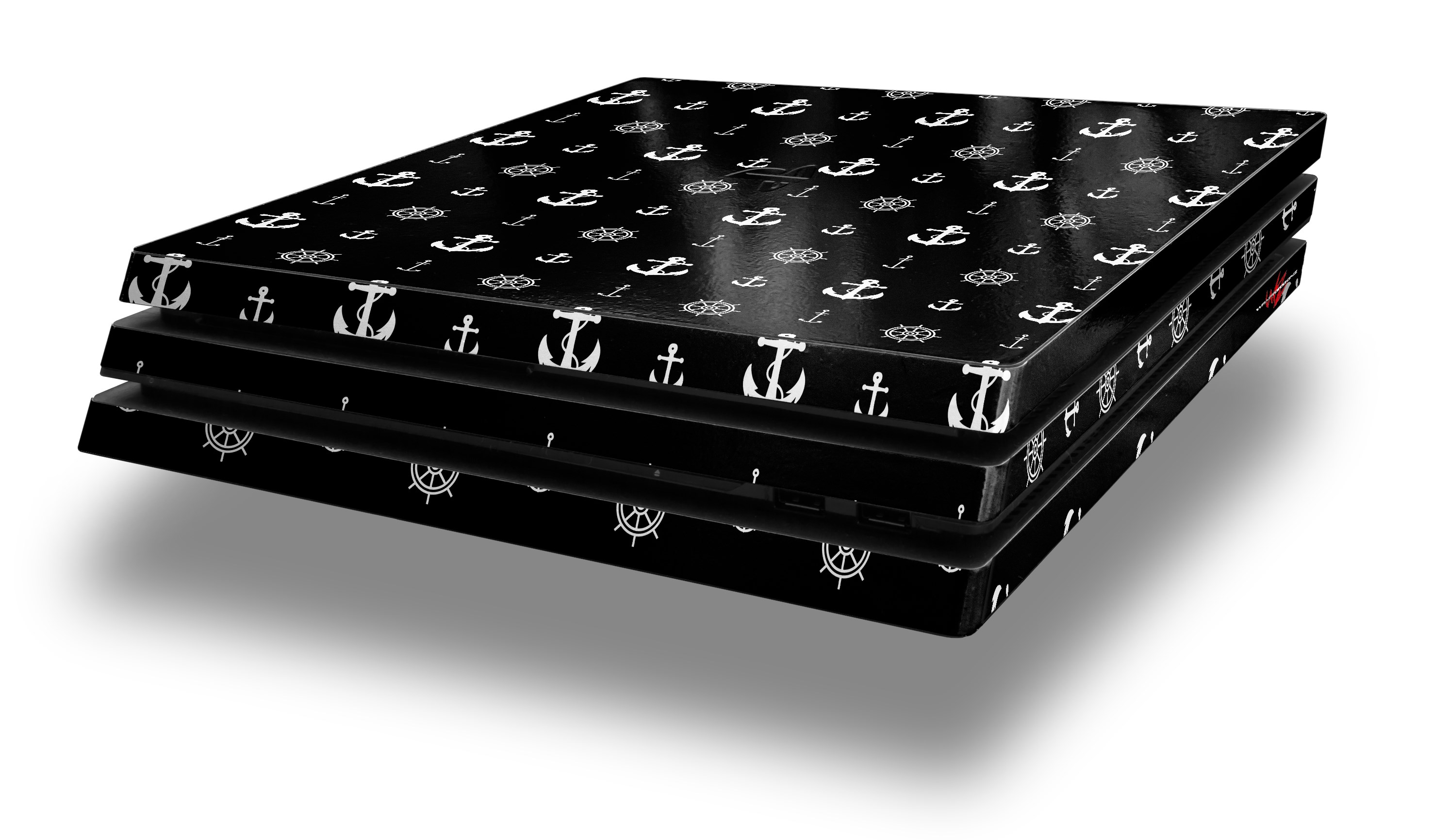 Vinyl Decal Skin Wrap compatible with Sony PlayStation 4 Pro Console Nautical Anchors Away 02 Black (PS4 NOT INCLUDED)