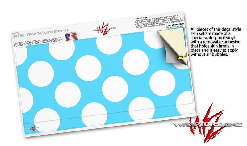 Skin Decal Wrap for RTIC Water Bottle 17oz Kearas Polka Dots White And Blue (BOTTLE NOT INCLUDED)